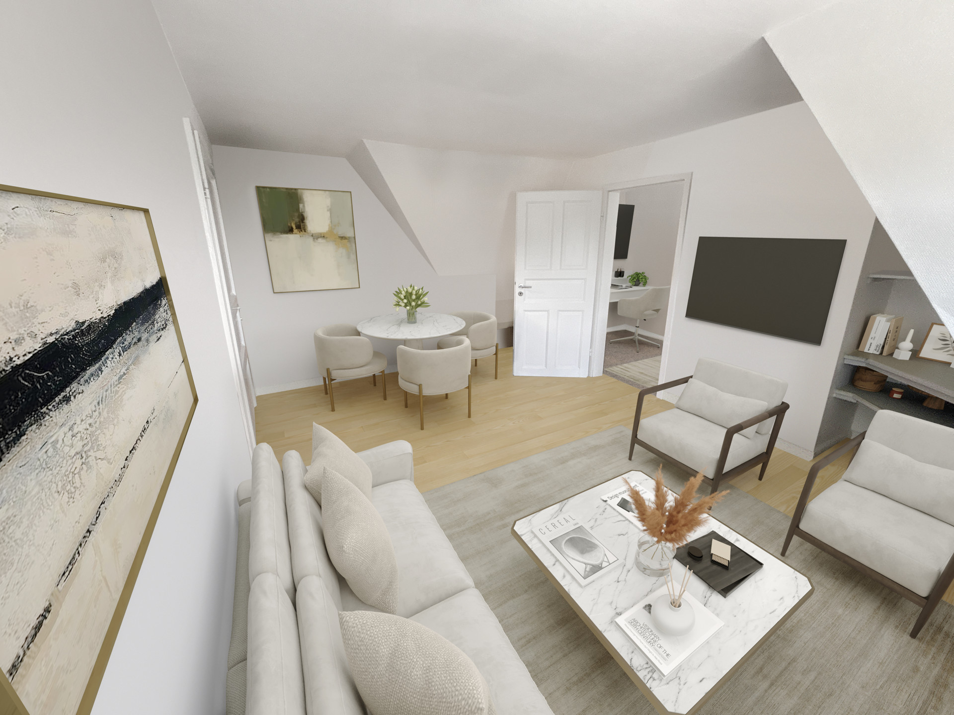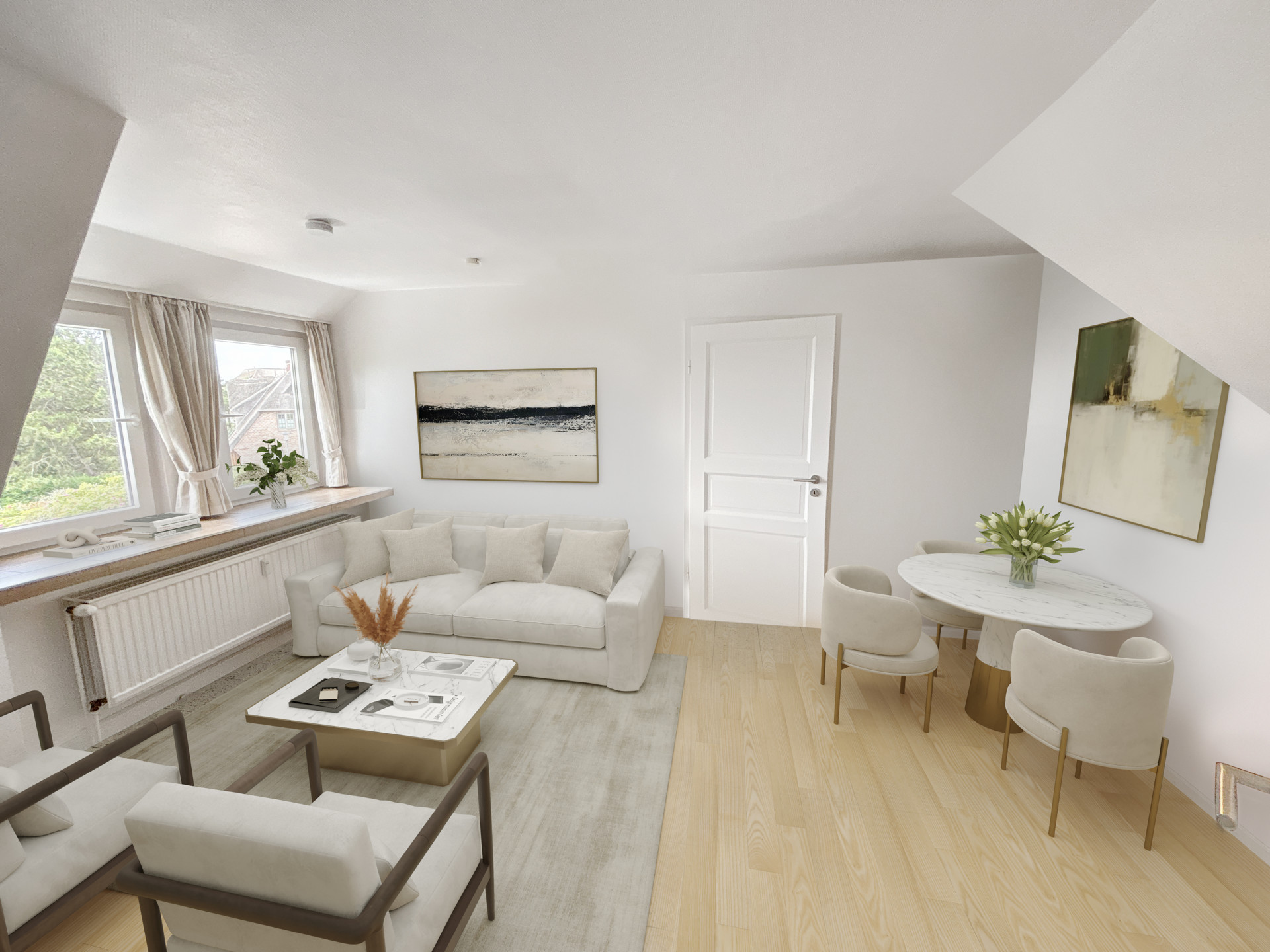 Diese gepflegte 3-Zimmer-Obergeschosswohnung befindet sich in ruhiger und begehrter Dünenlage – fußläufig zu Bäcker und Lebensmittelmarkt. Die Wohnung überzeugt durch eine durchdachte Raumaufteilung und ihren guten Gesamtzustand. Über den Flur gelangen Sie in das helle Wohnzimmer mit gemütlicher Essecke und offener Küche. Ein separates Schlafzimmer mit zwei Einzelbetten sowie ein modernes Duschbad mit WC bieten angenehmen Komfort. Über eine fest eingebaute Treppe erreichen Sie den ausgebauten Spitzboden, der zusätzlichen Platz für Gäste, Homeoffice oder Stauraum bietet. Die Wohnung verfügt über keinen Balkon, punktet jedoch mit einem hellen und freundlichen Wohnambiente. Ein Pkw-Stellplatz ist der Wohnung zugeordnet. Als Highlight steht den Bewohnern ein gemeinschaftlich nutzbares Außenschwimmbad und der Aussenanlage zur Verfügung – ideal zur Entspannung an warmen Tagen. Die Kombination aus gepflegtem Zustand, praktischer Raumaufteilung und attraktiver Lage macht diese Immobilie zu einem tollem Domizil auf Sylt. Kaufpreis €595.000,– inkl. MwSt. (€500.000,– netto) / Die MwSt. kann optiert werden. Nähere Informationen erhalten Sie gerne bei einem persönlichem Gespräch.