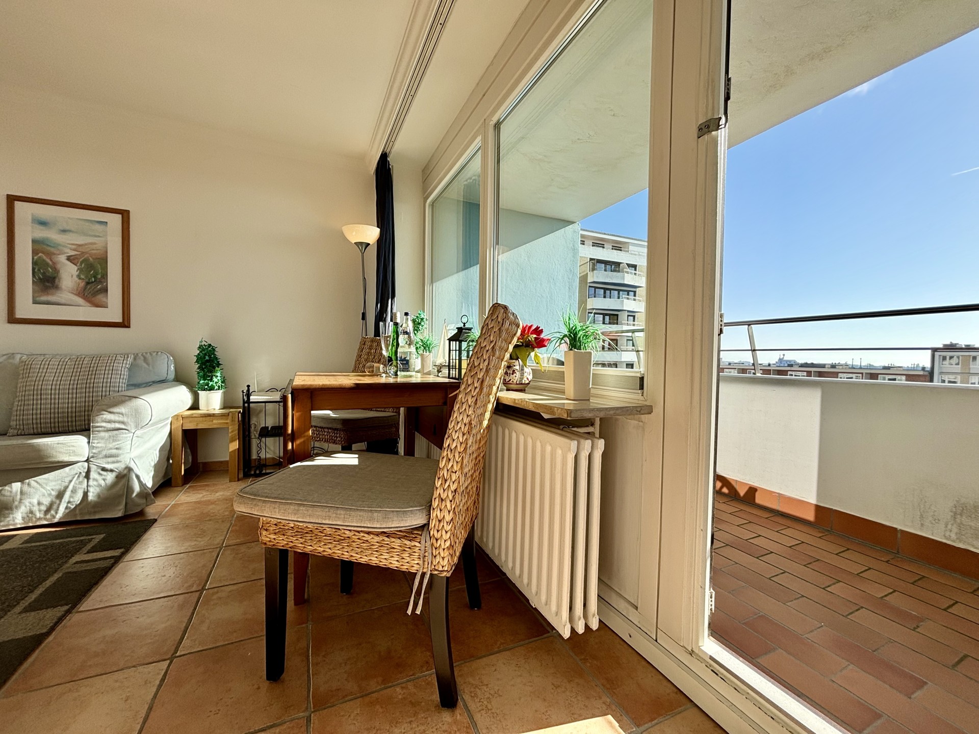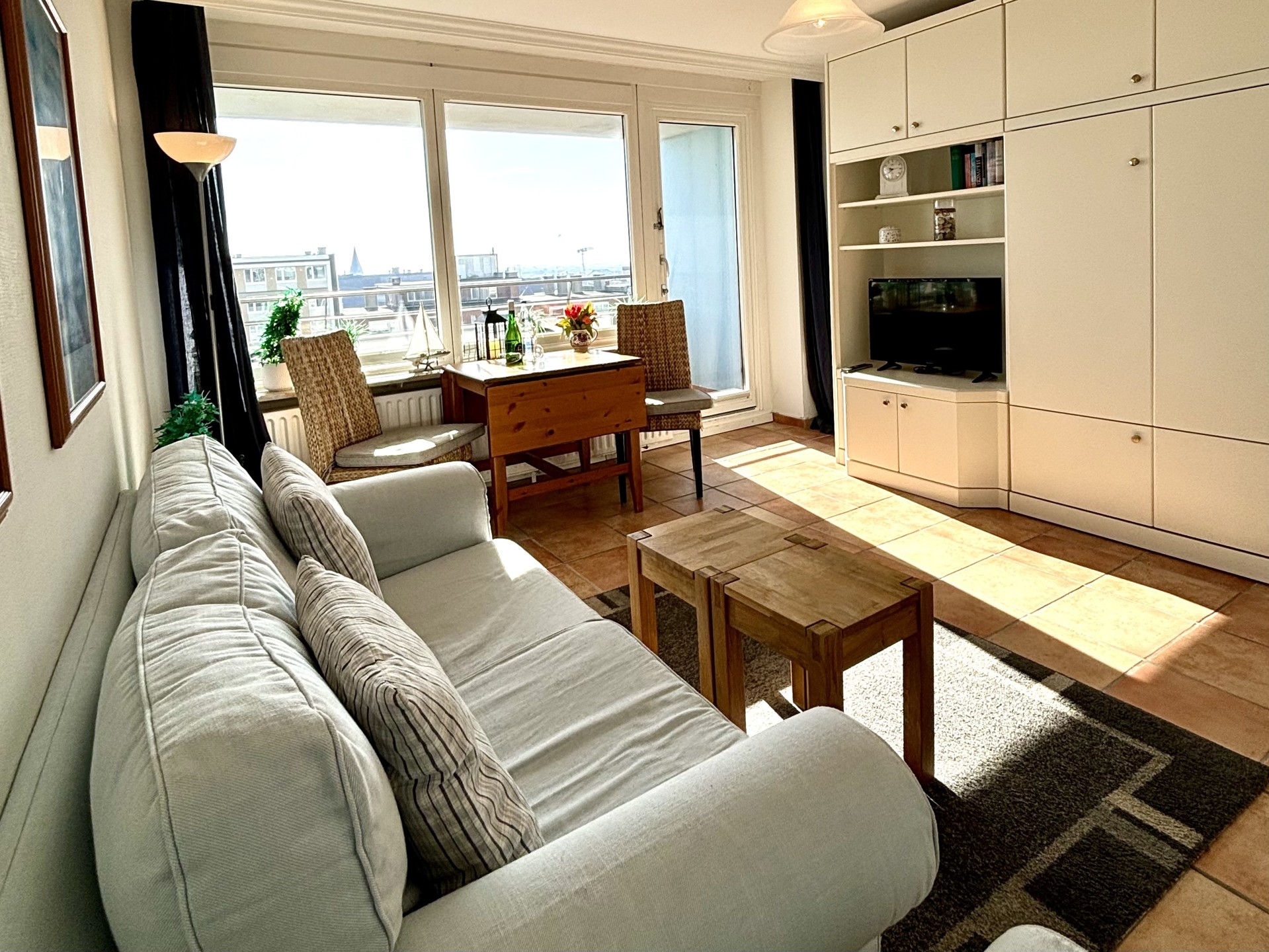 Eine vorhandene Schrankwand mit integriertem Schrankbett ermöglicht eine optimale Raumnutzung und bietet gleichzeitig großzügigen Stauraum. Der überdachte Balkon in Ostausrichtung eröffnet einen schönen Blick über Westerland und lädt zu entspannten Momenten in der Morgensonne ein.