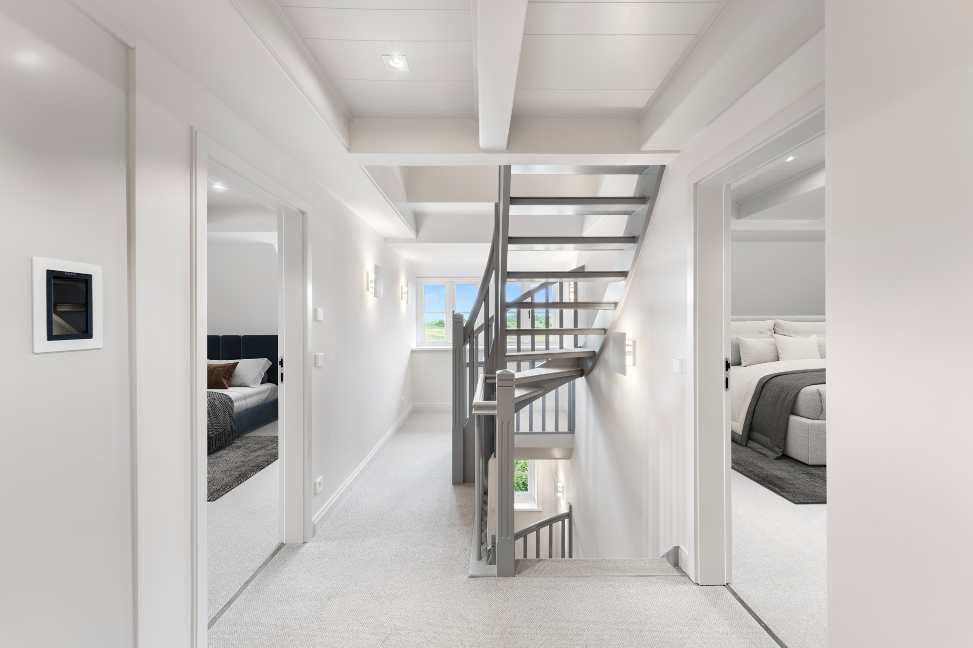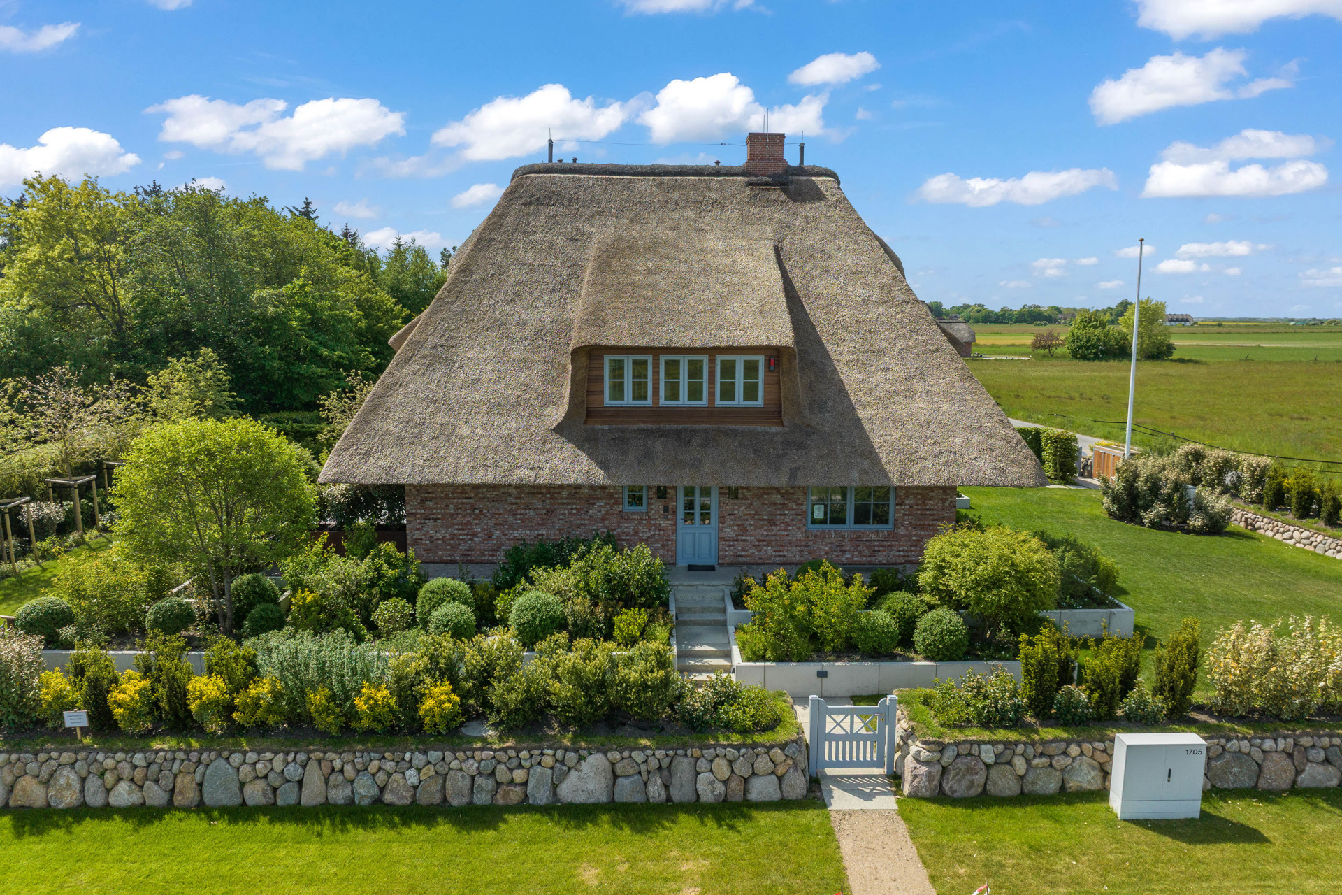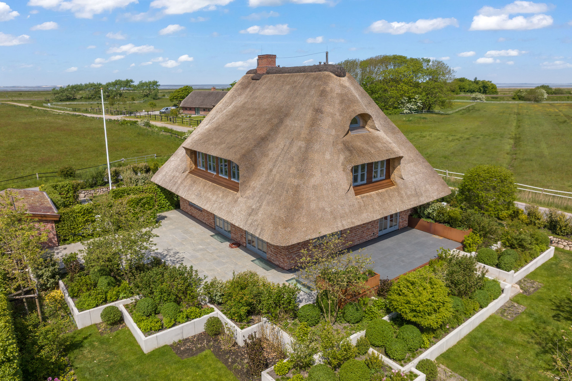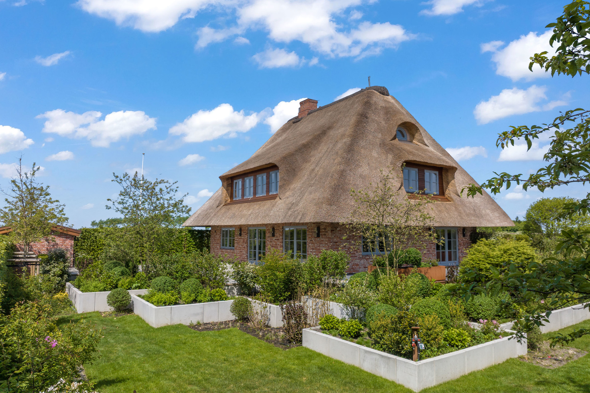 Willkommen in Ihrem ganz persönlichen Rückzugsort auf Sylt. Dieses frisch kernsanierte Reetdachanwesen in Morsum verbindet nordische Tradition mit modernstem Wohnkomfort auf ca. 381 m² Wohn- und Nutzfläche. Das Erdgeschoss empfängt Sie mit einem stilvollen Wohnzimmer und Kamin, einer separaten Küche samt kleinem Esstresen sowie einem flexibel nutzbaren Büro oder Schlafzimmer. Flur, Garderobe und Gäste-WC komplettieren die durchdachte Aufteilung. Auf den sonnigen Terrassen genießen Sie herrliche Stunden mit unverbaubarem Blick über die weiten Morsumer Felder. Drei großzügige Schlafzimmer, jeweils mit eigenem Bad en suite, erwarten Sie im Obergeschoss. Der ausgebaute Spitzboden mit zusätzlichem Duschbad schafft Raum für Kreativität oder Gäste. Im Untergeschoss lädt ein exklusiver Wellnessbereich mit finnischer Sauna, Dampfsauna, Dusche und WC zum Entspannen ein. Ein Hauswirtschaftsraum mit kleiner Küche, zwei weitere Räume sowie ein Technikraum bieten praktische Ergänzungen. Die prachtvolle Gartenanlage, eine Garage und ein zusätzlicher Stellplatz runden dieses einmalige Angebot ab. Hier wohnen Sie auf höchstem Niveau – inmitten idyllischer Natur und mit einem Blick, der bleibt.