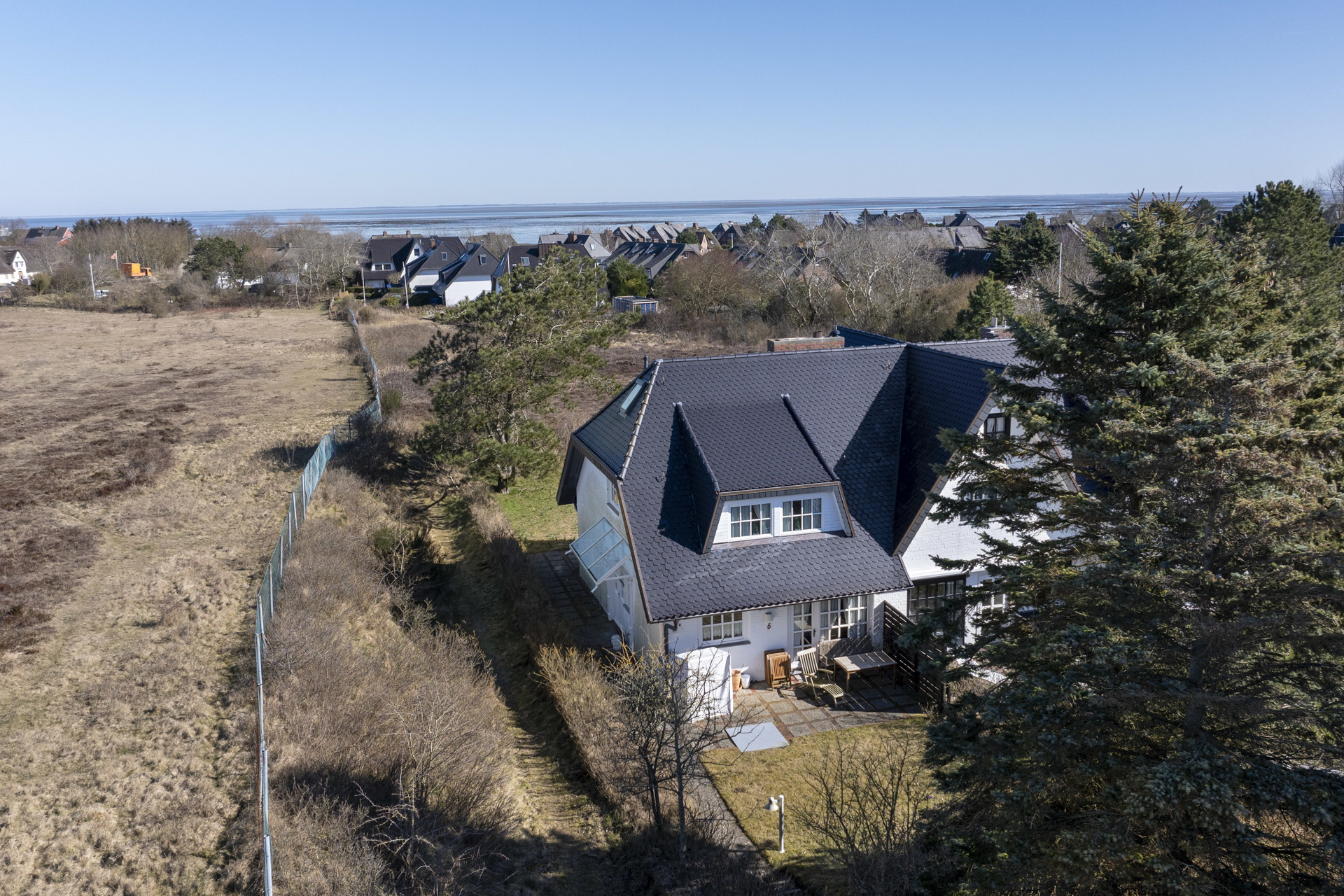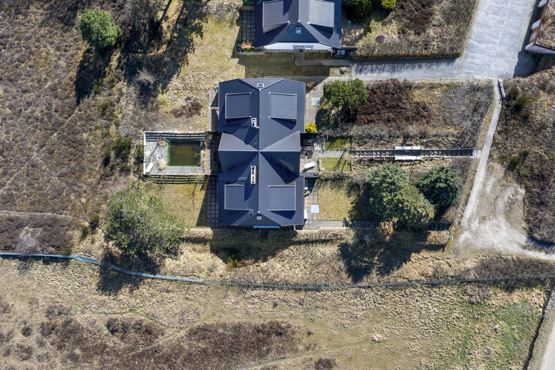 Sie erreichen das Haus über eine ruhige, verkehrsberuhigte Straße. Bereits beim Eintreten eröffnet sich Ihnen ein malerischer Blick über die angrenzenden Heideflächen – ideal zum Entspannen und Genießen.