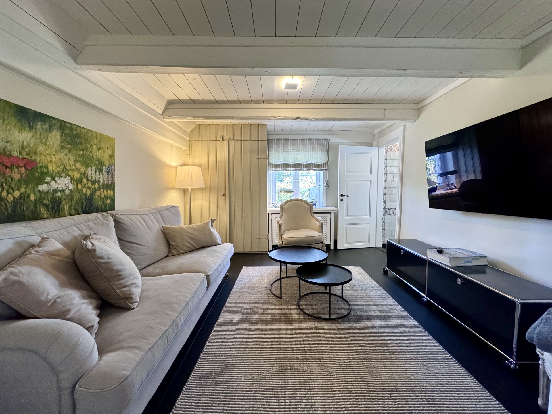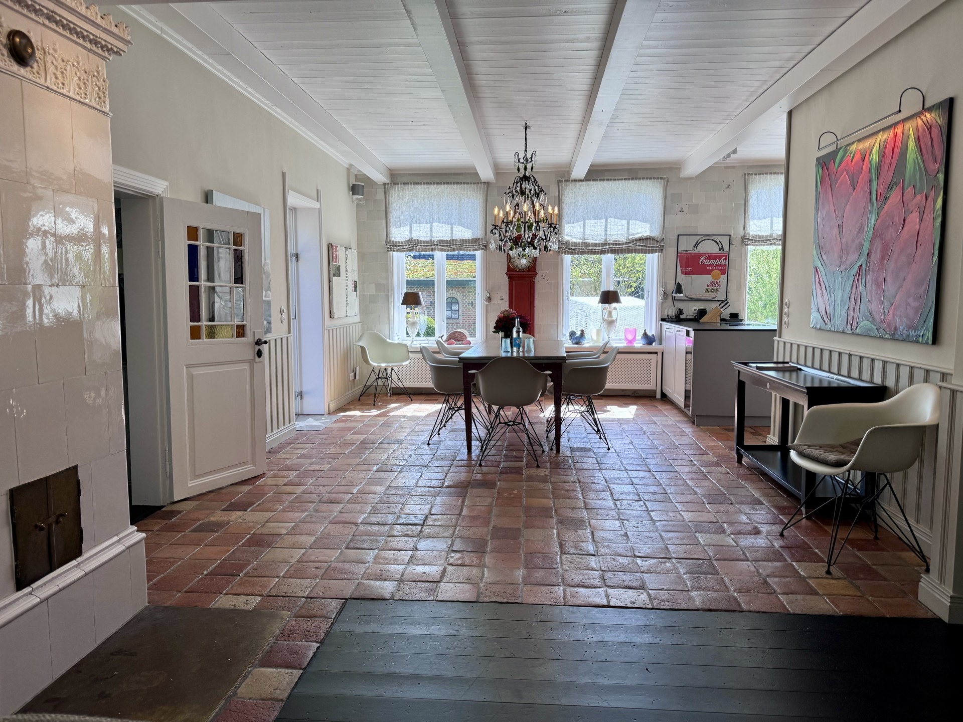 Der aktuelle Besitzer hat das Anwesen erneut umfassend modernisiert und komplett neu möbliert. Dabei wurde größter Wert auf den Denkmalschutz gelegt, und alle Maßnahmen wurden in Absprache mit den zuständigen Behörden durchgeführt. Die authentischen historischen Elemente des Interieurs, darunter zwei Mylin-Kaminöfen und antike Fußböden, harmonieren heute wunderbar mit zeitgenössischen, sorgfältig ausgewählten Kunstwerken.