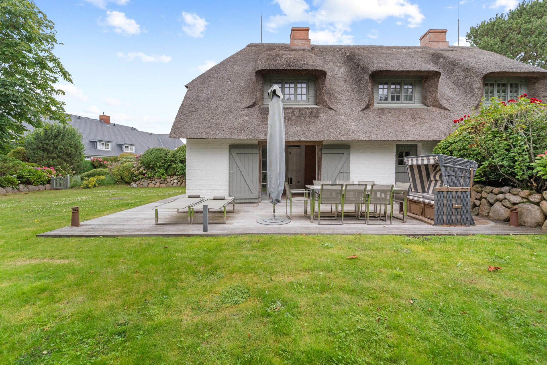 Dieses charmante Eckhaus unter Reet verbindet traditionelle Sylter Baukultur mit modernem Wohnkomfort. Auf rund 210 m² Wohn-/Nutzfläche bietet die Immobilie ein stilvolles Zuhause mit durchdachtem Grundriss und hochwertiger Ausstattung. Das ca. 424 m² große, nicht einsehbare Grundstück ist liebevoll gestaltet und punktet mit Süd-West-Ausrichtung, geschützter Terrasse, Gartenhaus sowie einem eigenen Pkw-Stellplatz direkt am Haus.