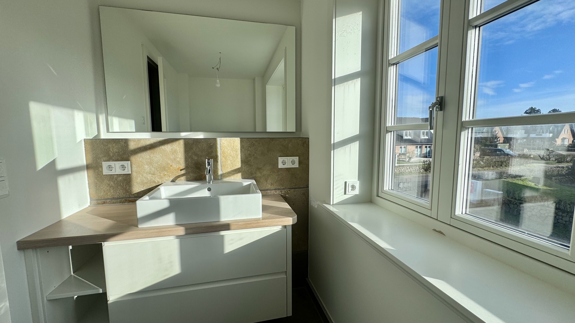 Bereits beim Betreten des Hauses spürt man die besondere Atmosphäre. Der Eingangsbereich bietet Platz für eine Garderobe und führt in den hellen Wohn- und Essbereich, der durch bodentiefe Fenster sanft von Tageslicht durchflutet wird. Ein stilvoller Gaskamin sorgt für eine behagliche Stimmung, während die westlich ausgerichtete Terrasse und der liebevoll angelegte Garten mit typischer Inselbepflanzung zum Verweilen einladen.